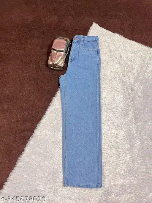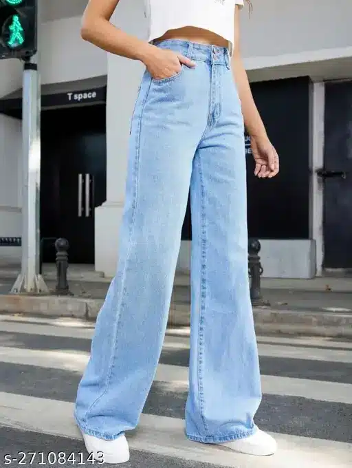 Name : Baggy Jeans,WOMEN BLUE WIDE LEG JEANS BY SKG | LATEST HIGH WAIST STRAIGHT FIT DENIM | NON-STRETCHABLE FLARED FULL LENGTH HIGH RISE JEANS FOR WOMEN | STRAIGHT WIDE LEG JEANS