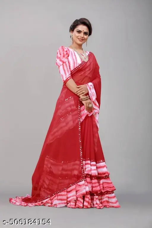 Name : Shibori Print Ruffle Georgette Trending Saree printed cotton sarees ruffle saree ethnic new arrival fashion laxmipati cotton silk daily wear party wear chiffon south latest saree 2024 rajsthani ready to wear saree bollywood bihari banarasi bhagalpuri kanjivaram sequin south indian sarees