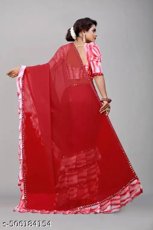 Shibori Print Ruffle Georgette Trending Saree printed cotton saree